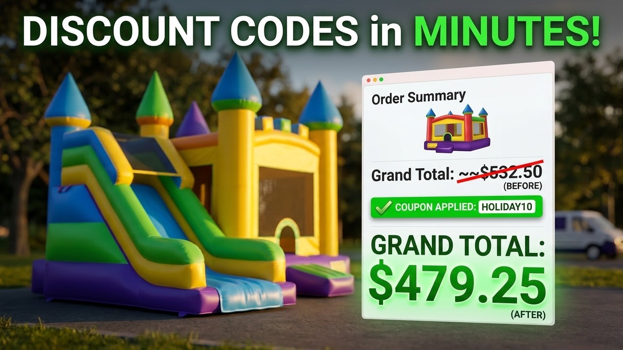 Whether you're offering a "SUMMER20" code for 20% off bounce houses or a "FIRSTORDER" discount for new customers, coupon codes give you flexible control over your pricing and promotions.